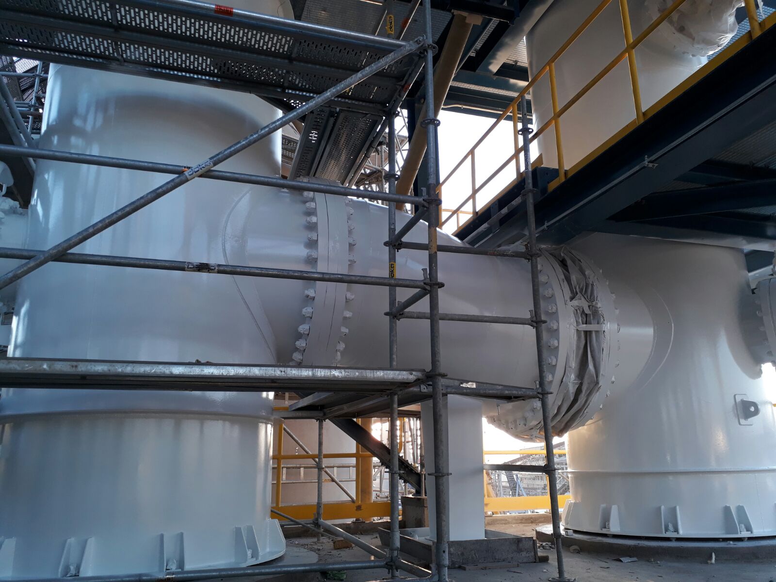 Ekipman Bilgisi: 1 adet SS 904L DIHYDRATE CAKE HOPPER (5300 x 5100 x 5120mm , Toplam Ağırlık: 17 ton) 1 adet SS 904L CLOTH WASH HOPPER (5250 x 4500 x 2835mm , Toplam Ağırlık: 6 ton)Fosforik Asit Tesisinde (PAP) kullanılmak üzere toplam ağırlığı 23 ton olan 2 adet SS 904L hopper imal edilmiş ve sahada montajı yapılmıştır.